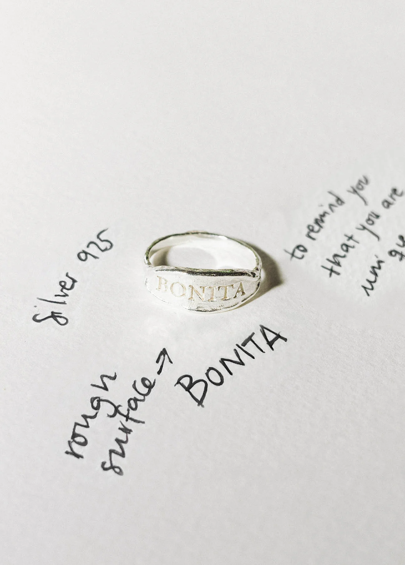El anillo Bonita es un anillo con un carácter muy personal que te recuerda que eres única y preciosa todos los días de tu vida :) La superficie rugosa le aporta el carácter Mediterráneo y artesanal.