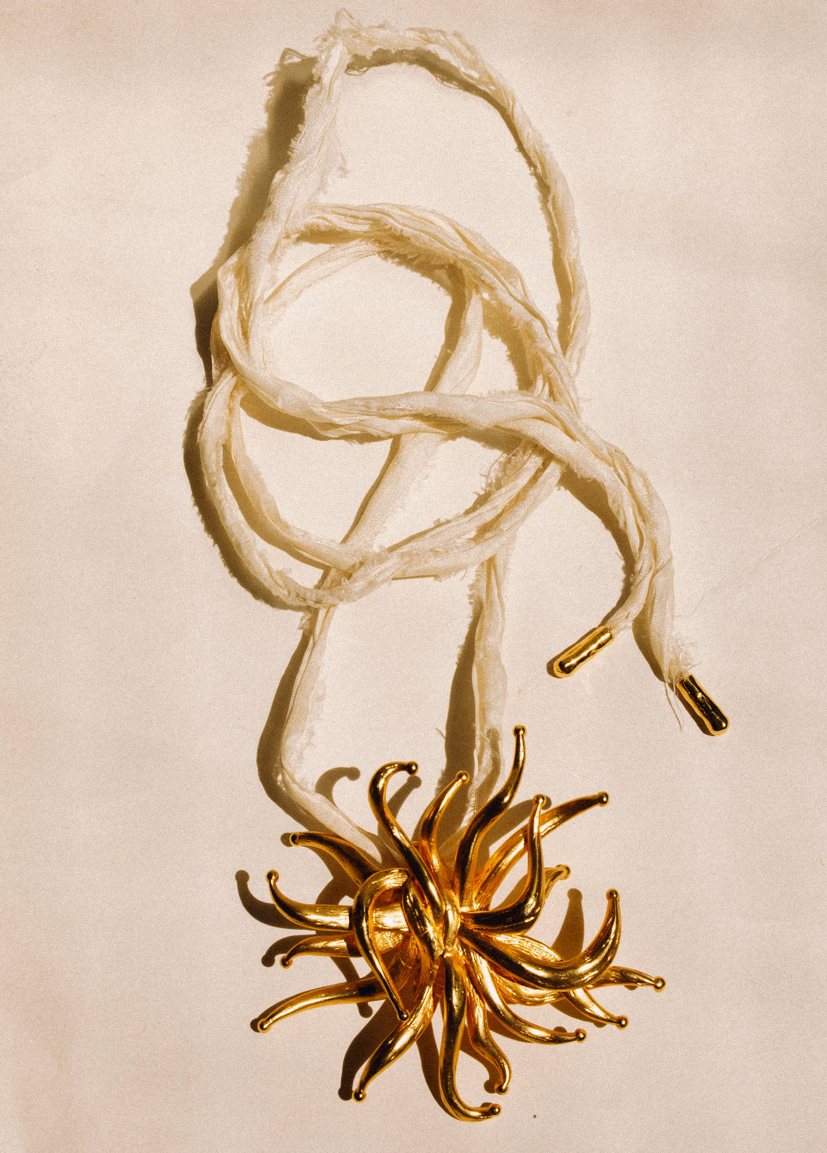 Inspirado en la forma y movimiento de la anémona de mar, estas criaturas marinas se mecen suavemente como si danzaran con la corriente. Pese a su aspecto frágil, las anémonas son animales que evocan el misterio del océano y que sobreviven a las aguas más inhospitas. Su movimiento hipnótico recuerda a las nereidas de la mitología griega: ninfas marinas que habitaban las aguas costeras, protegían a los navegantes y danzaban libres entre las olas. Este broche, que también puede usarse como colgante, simboliza la fuerza que sobrevive en lo delicado, y la conexión entre el mundo visible y lo mítico.