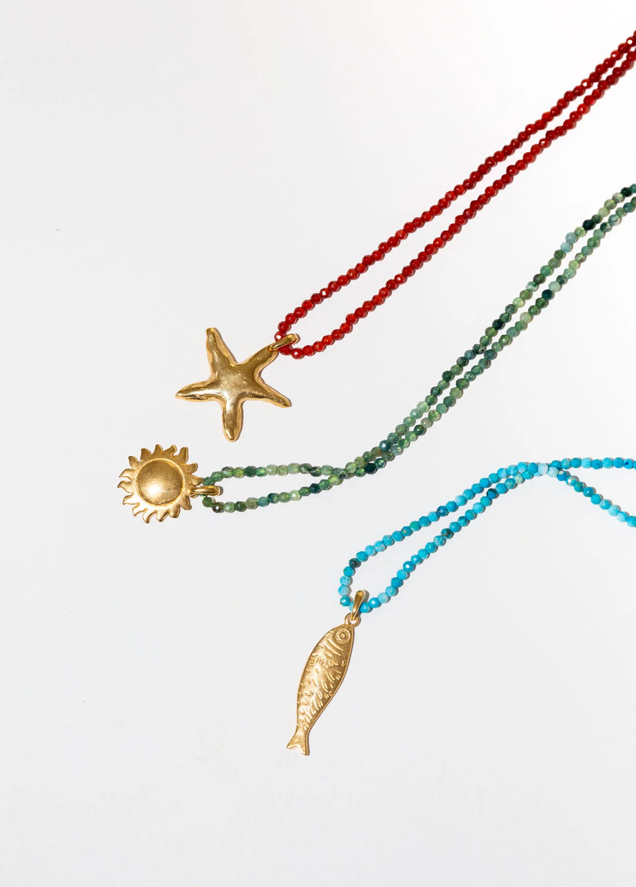Colgante sole mio inspirado en la cultura Mediterránea. Es un elemento fundamental en muchas mitologías alrededor del mundo y ha sido objeto de adoración y simbolismo a lo largo de la historia. Tanto para los egipcios, como los griegos y los romanos, el sol significa el renacer: es invencible, siempre reluce y vuelve a traer la luz.