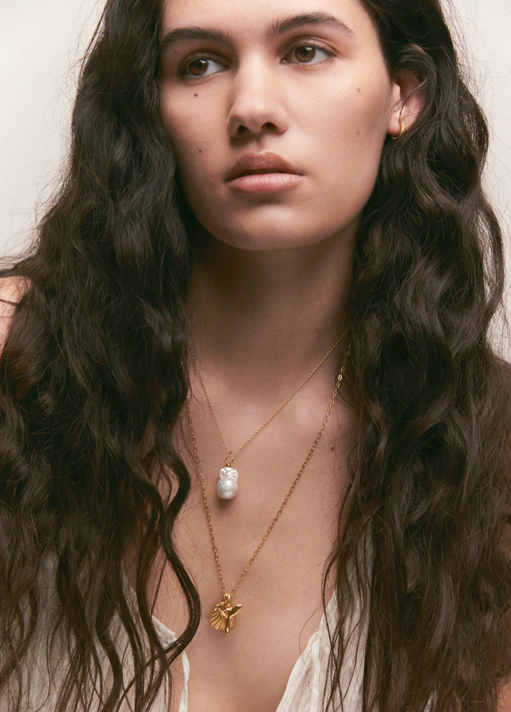 Incluye una delicada cadena de 44 cm o de 55 cm. Bañado en oro de 18k.